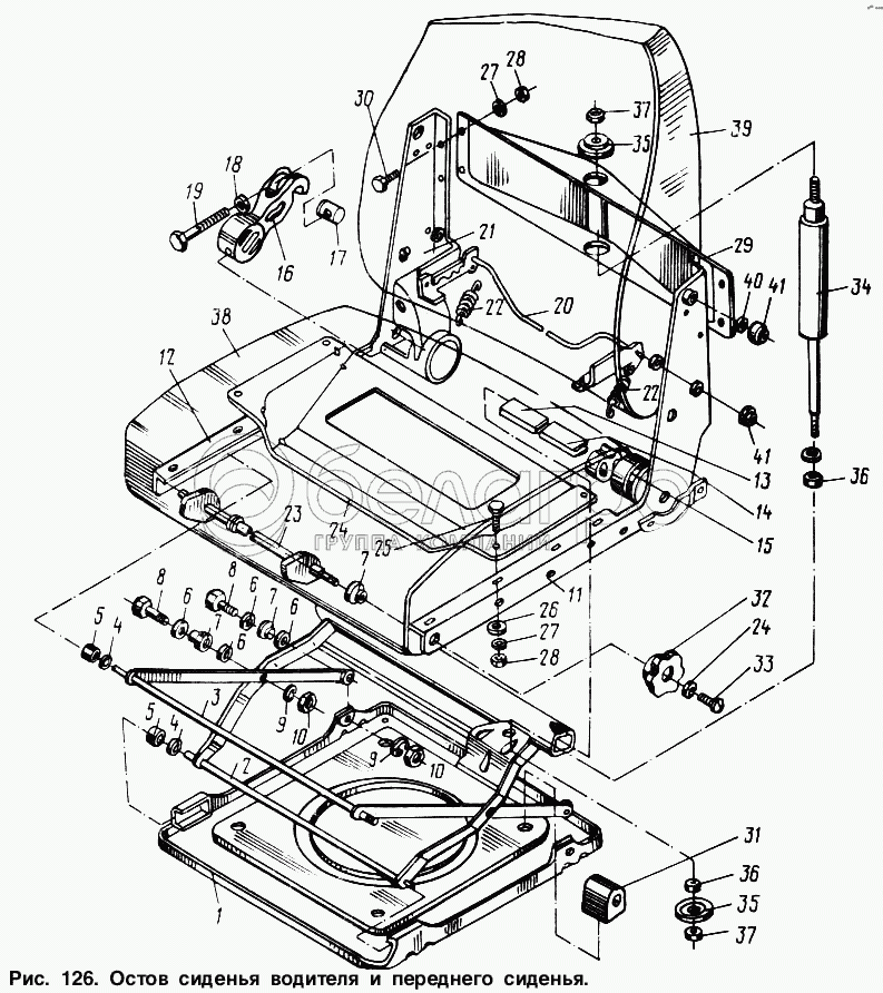 Каталог запасных частей к технике: МАЗ-54321. Остов сиденья водителя и переднего сиденья