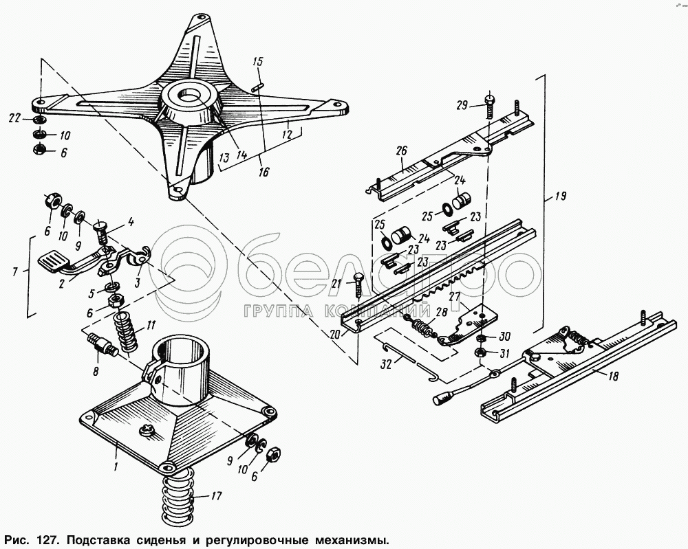 Каталог запасных частей к технике: МАЗ-54321. Подставка сиденья и регулировочные механизмы