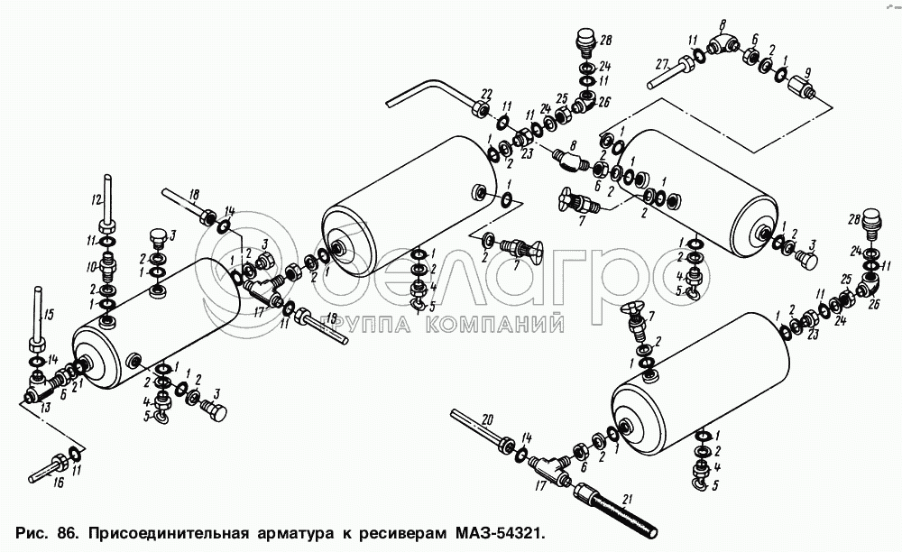 Каталог запасных частей к технике: МАЗ-54321. Присоединительная арматура к ресиверам МАЗ-54321