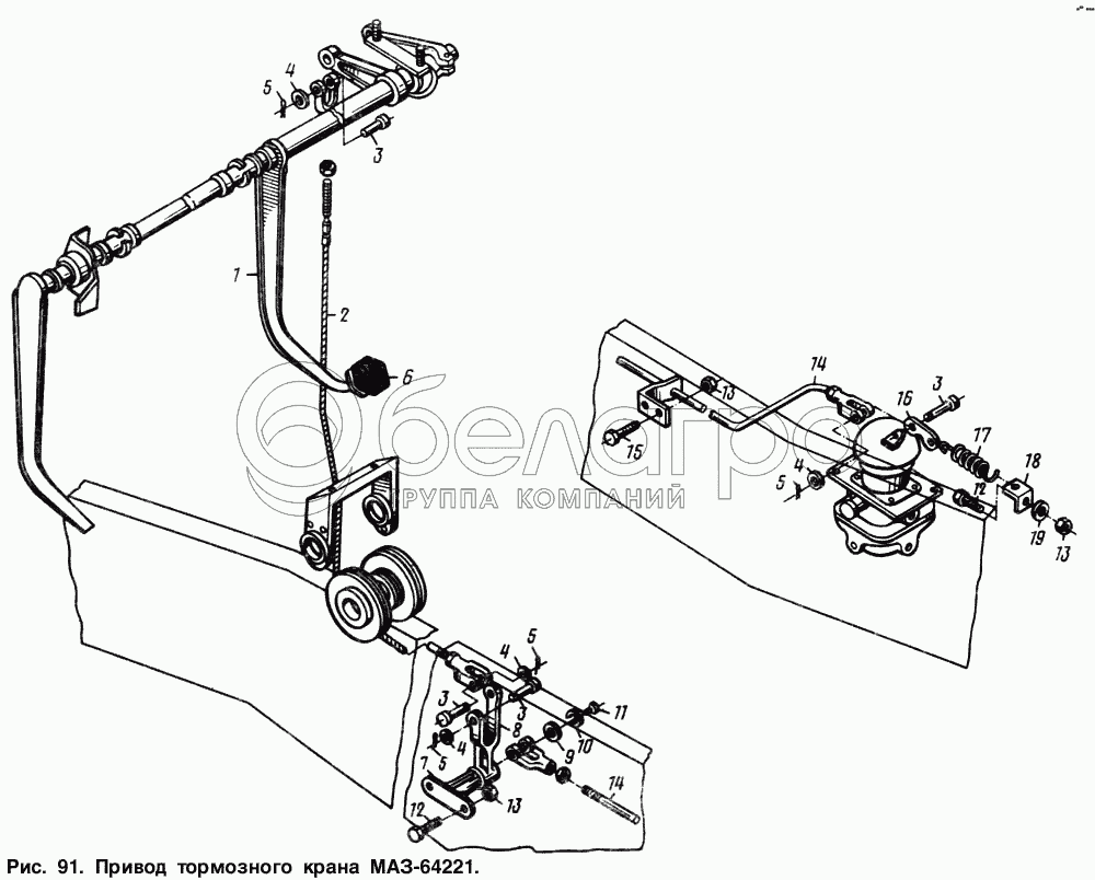 Каталог запасных частей к технике: МАЗ-54321. Привод тормозного крана МАЗ-64221