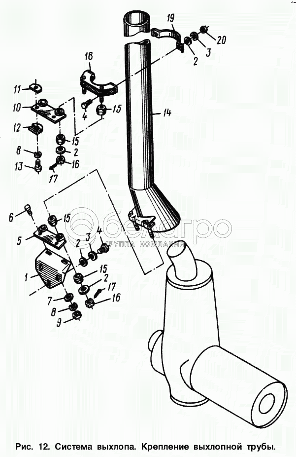 Каталог запасных частей к технике: МАЗ-54321. Система выхлопа. Крепление выхлопной трубы