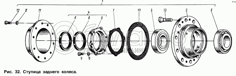 Каталог запасных частей к технике: МАЗ-54321. Ступица заднего колеса