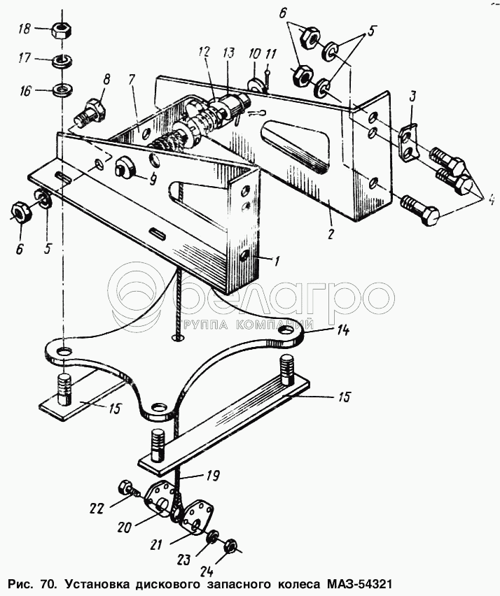 Каталог запасных частей к технике: МАЗ-54321. Установка дискового запасного колеса МАЗ-54321
