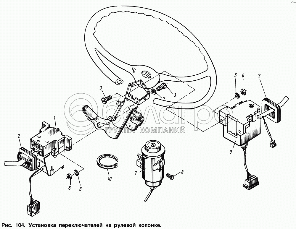 Каталог запасных частей к технике: МАЗ-54321. Установка переключателей на рулевой колонке