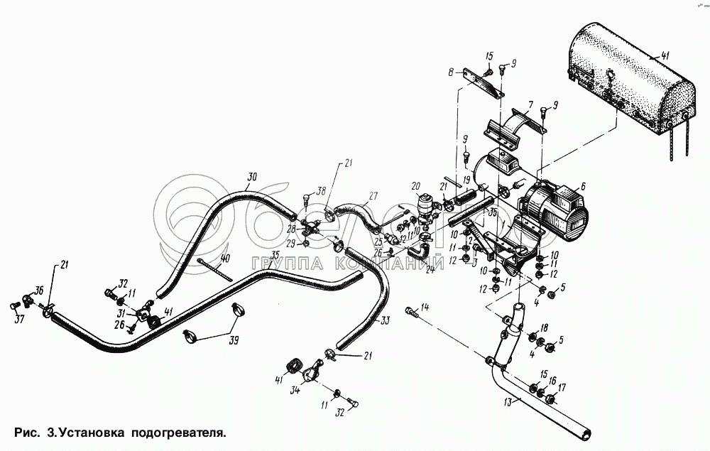 Каталог запасных частей к технике: МАЗ-54321. Установка подогревателя