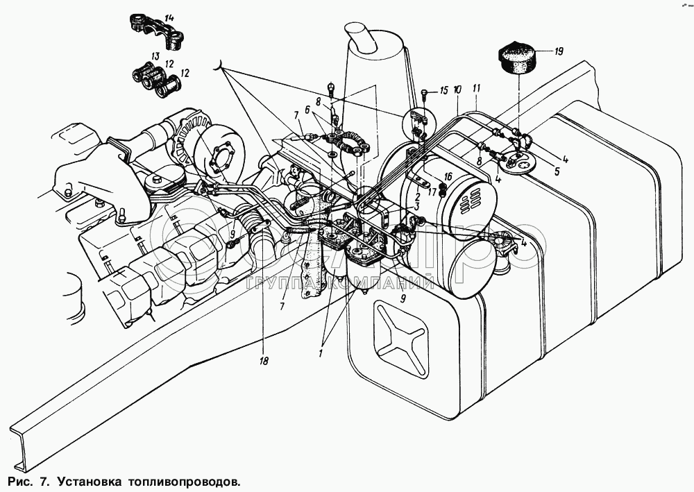 Каталог запасных частей к технике: МАЗ-54321. Установка топливопроводов