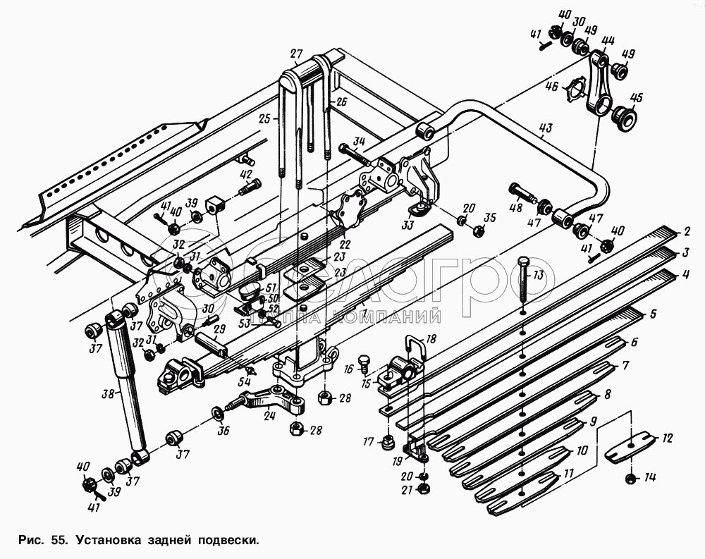 Каталог запасных частей к технике: МАЗ-54321. Установка задней подвески