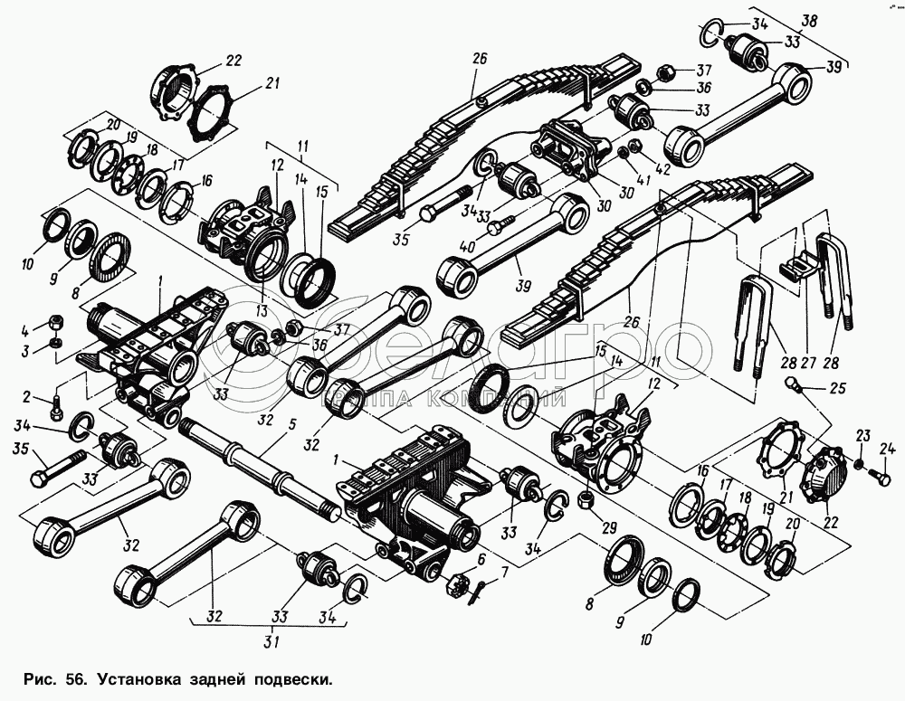 Каталог запасных частей к технике: МАЗ-54321. Установка задней подвески