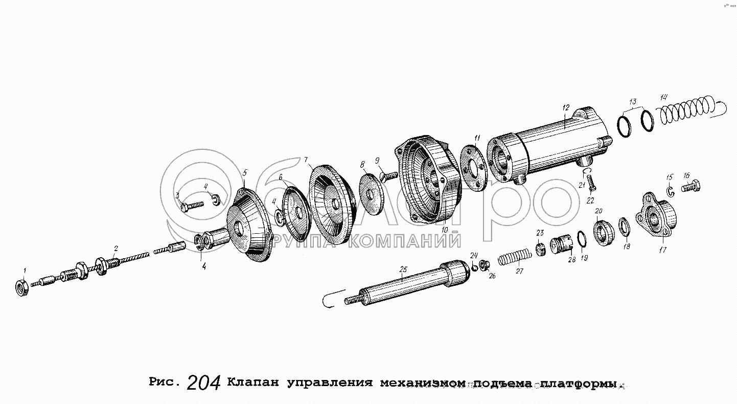 Каталог запасных частей к технике: МАЗ-54323. Клапан управления механизмом подъема платформы