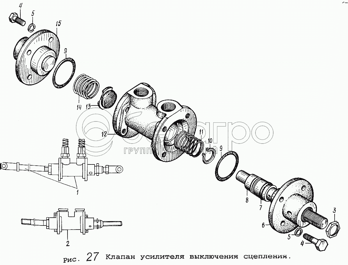 Каталог запасных частей к технике: МАЗ-54323. Клапан усилителя выключения сцепления