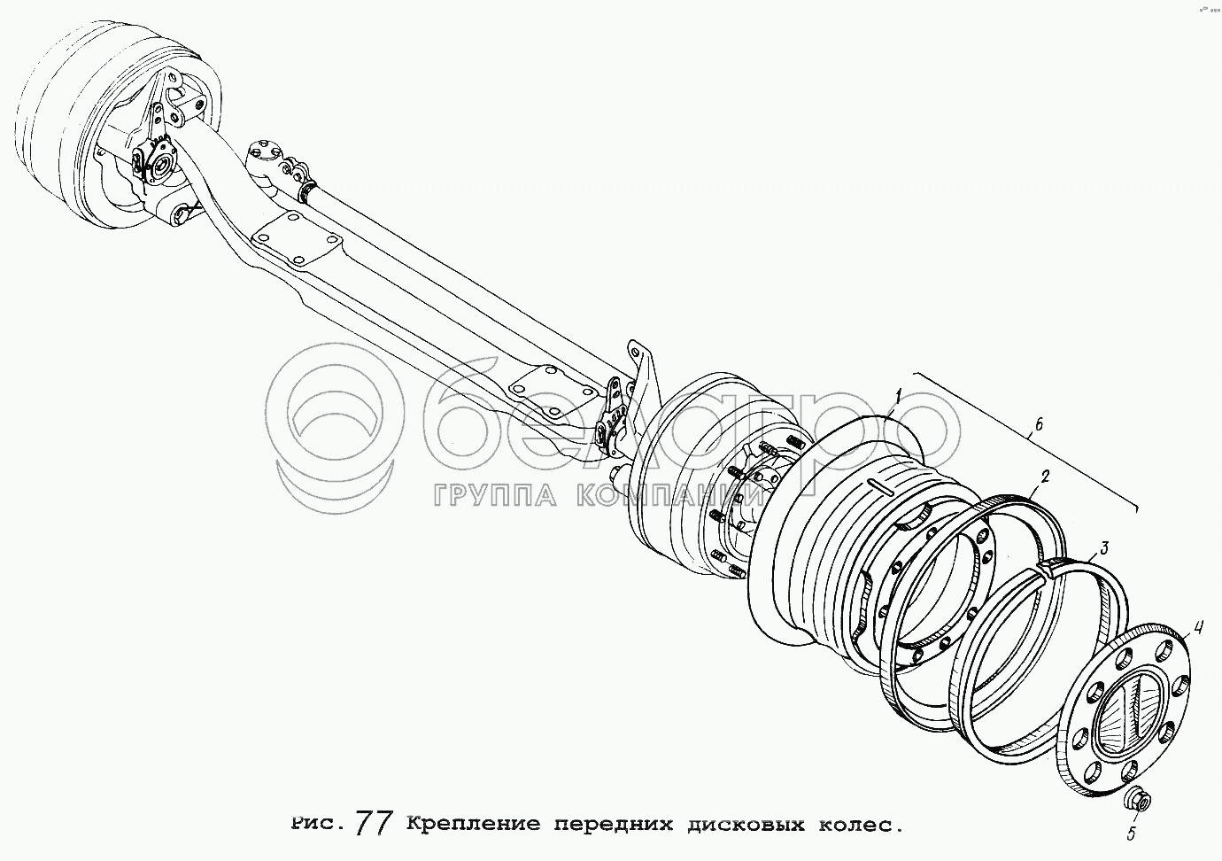 Каталог запасных частей к технике: МАЗ-54323. Крепление передних дисковых колес