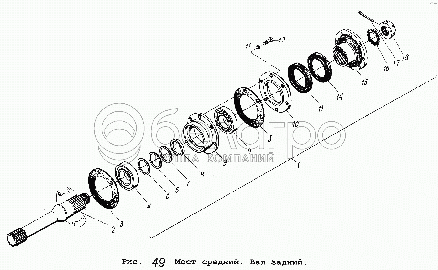 Каталог запасных частей к технике: МАЗ-54323. Мост средний. Вал задний