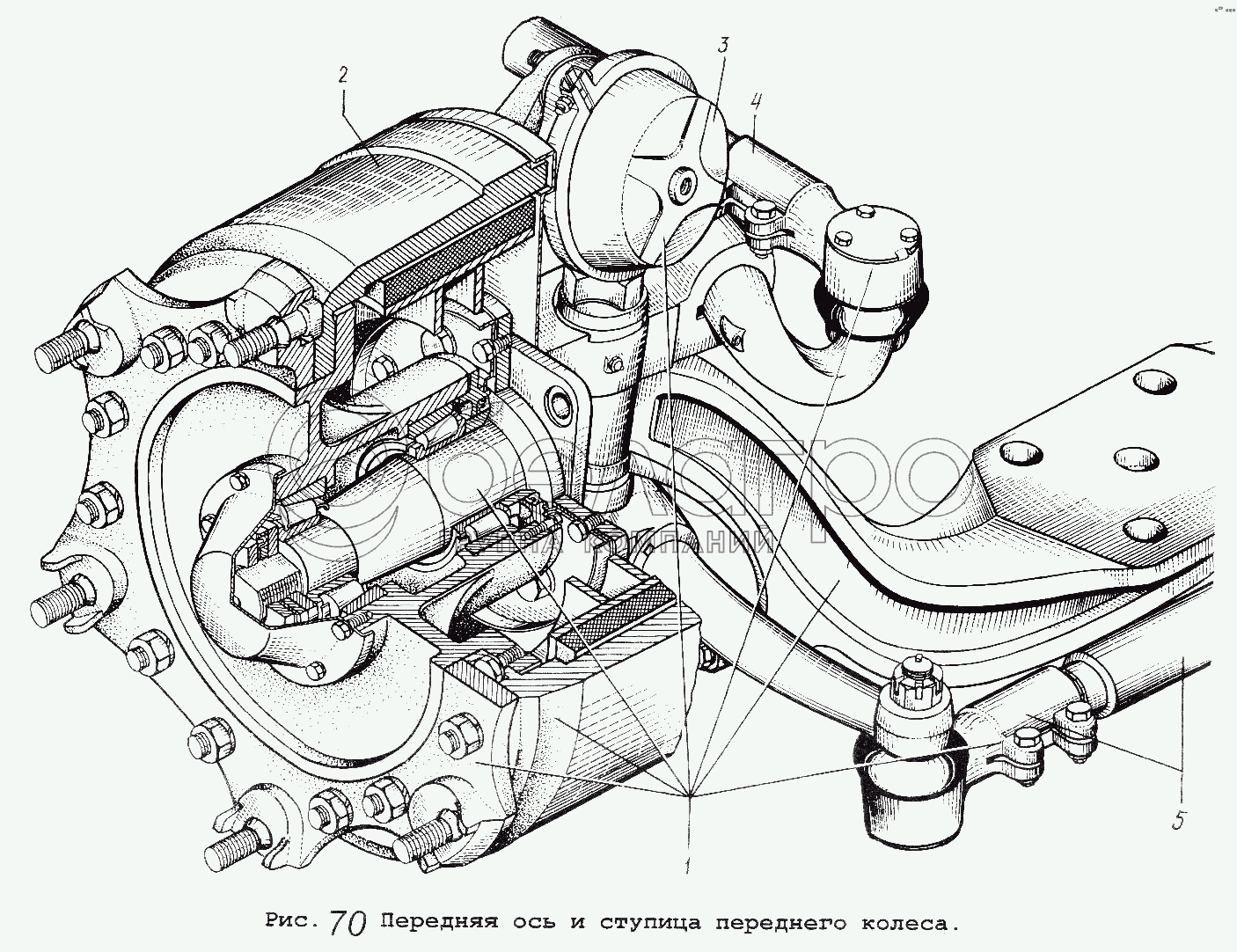 Каталог запасных частей к технике: МАЗ-54323. Передняя ось и ступица переднего колеса