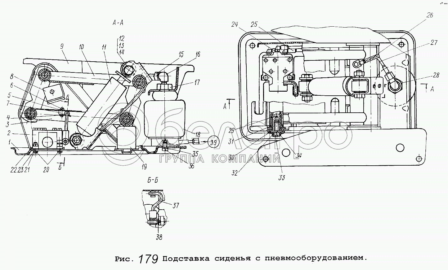 Каталог запасных частей к технике: МАЗ-54323. Подставка сиденья с пневмооборудованием