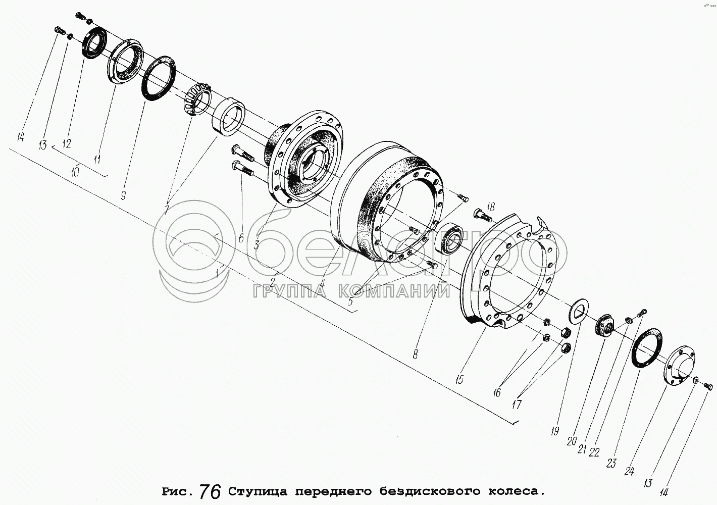 Каталог запасных частей к технике: МАЗ-54323. Ступица переднего бездискового колеса