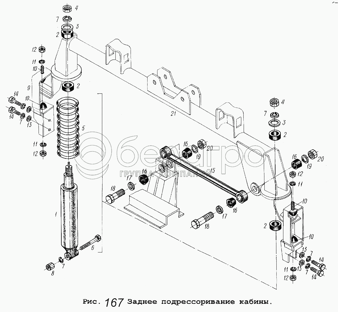 Каталог запасных частей к технике: МАЗ-54323. Заднее подрессоривание кабины