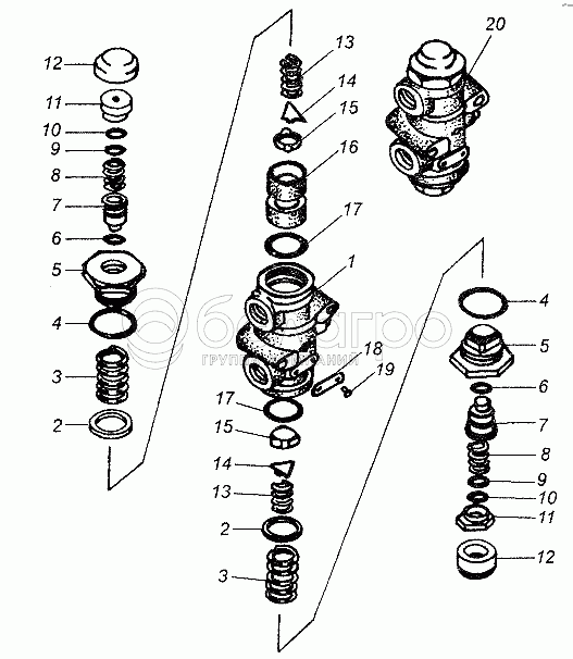 Каталог запасных частей к технике: МАЗ-54326. Клапан защитный двойной