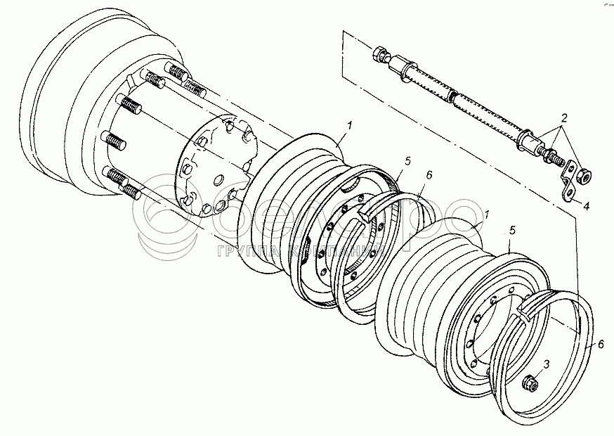Каталог запасных частей к технике: МАЗ-54326. Крепление задних колес