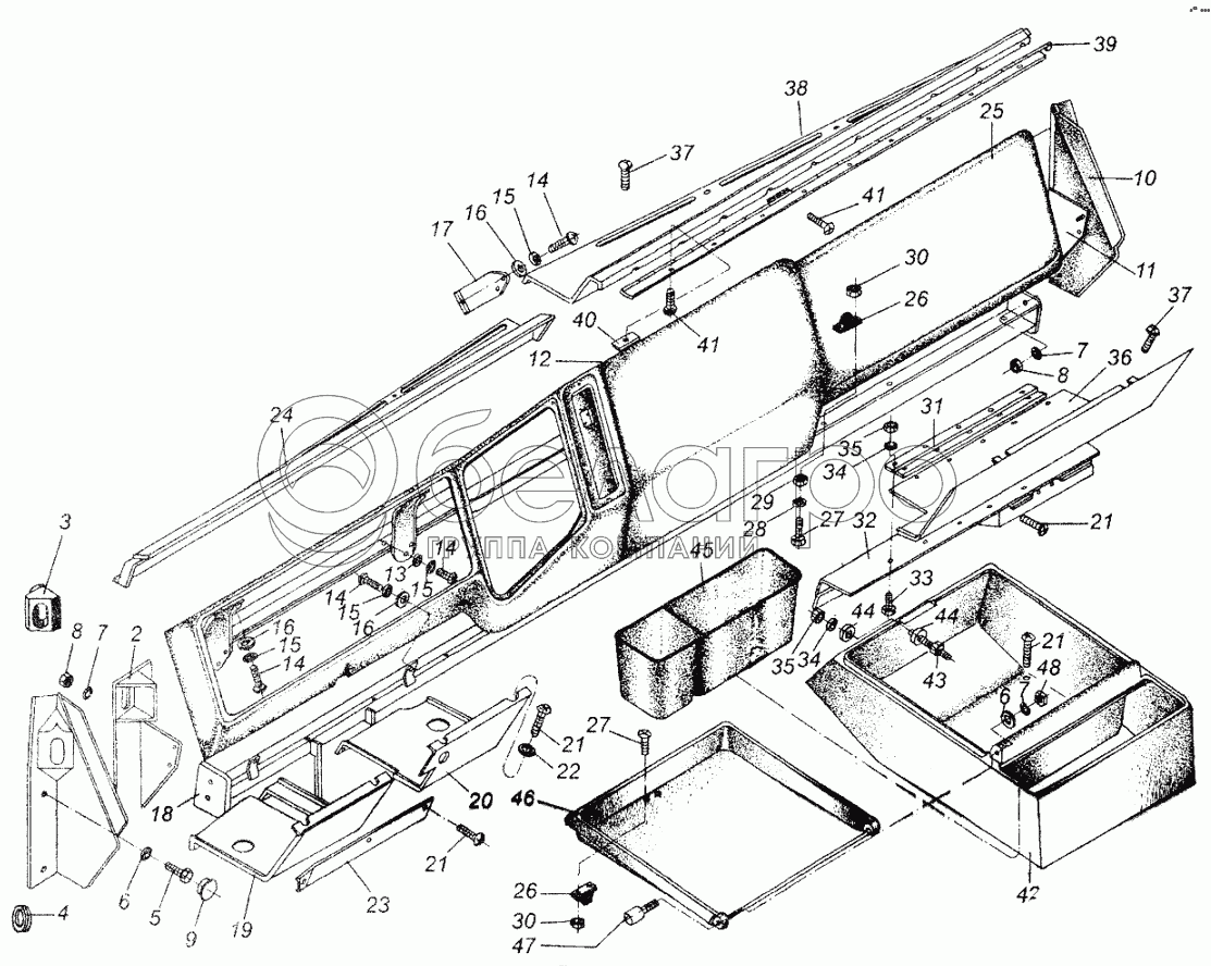 Каталог запасных частей к технике: МАЗ-54326. Панель приборов