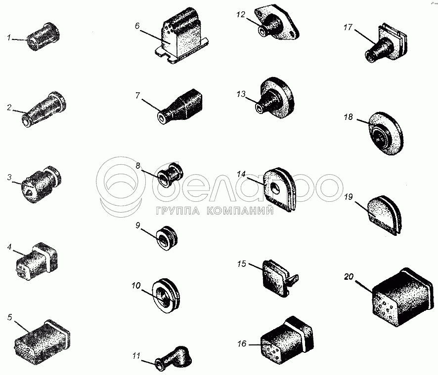 Каталог запасных частей к технике: МАЗ-54326. Резинотехнические изделия электрооборудования