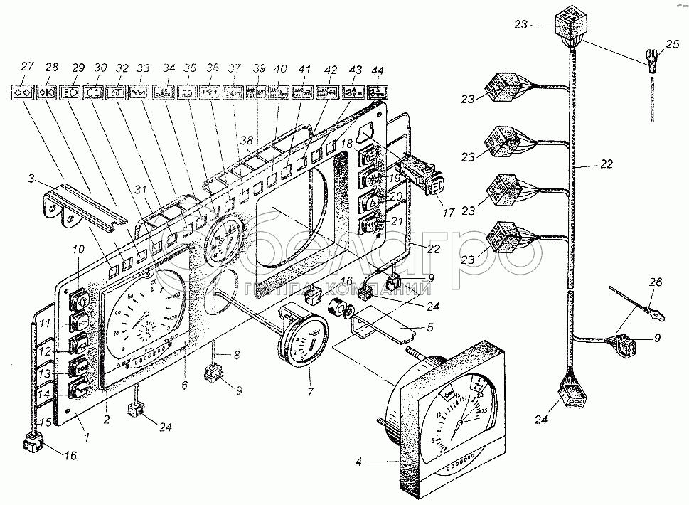 Каталог запасных частей к технике: МАЗ-54326. Щиток приборов
