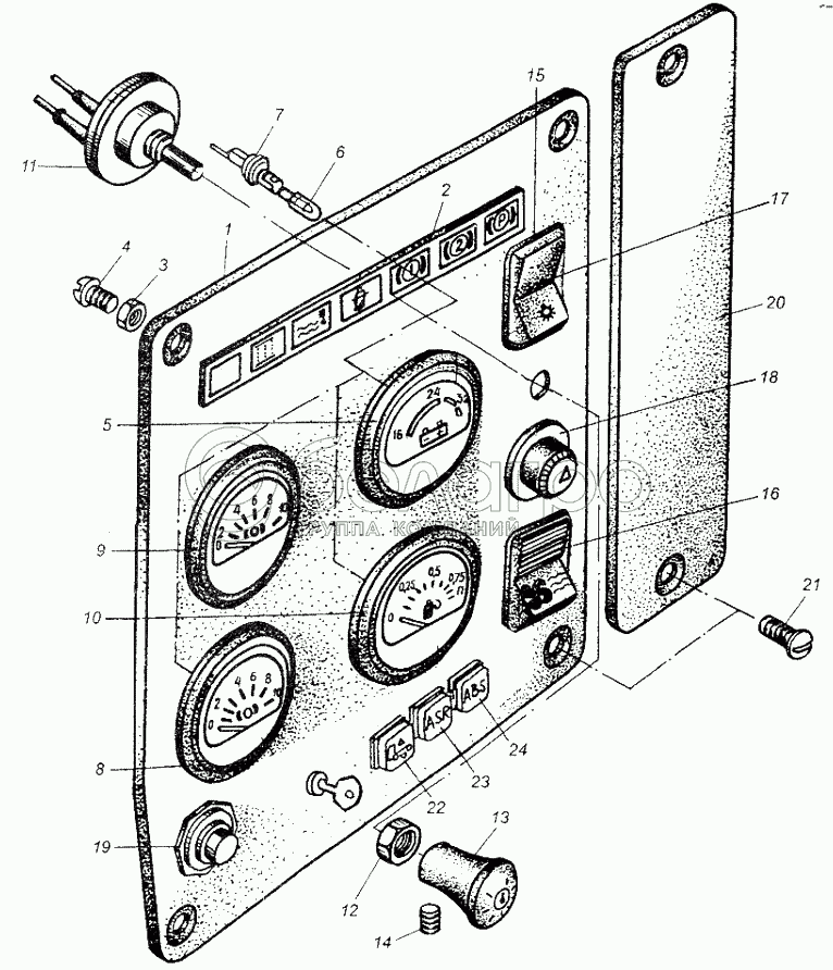 Каталог запасных частей к технике: МАЗ-54326. Щиток приборов