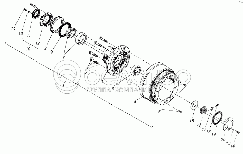 Каталог запасных частей к технике: МАЗ-54326. Ступица передней оси