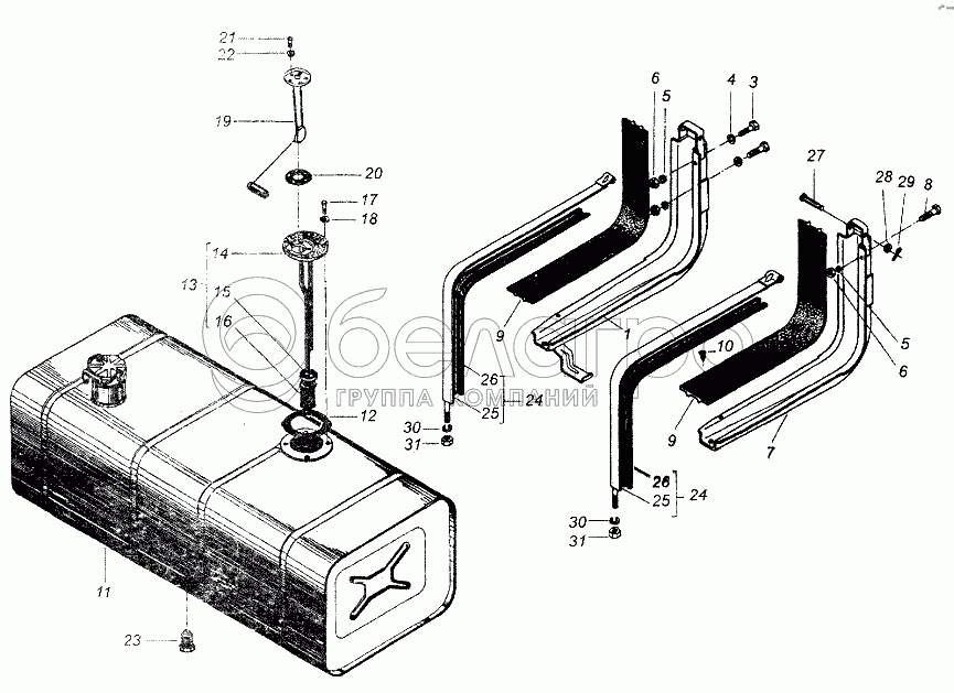 Каталог запасных частей к технике: МАЗ-54326. Топливный бак