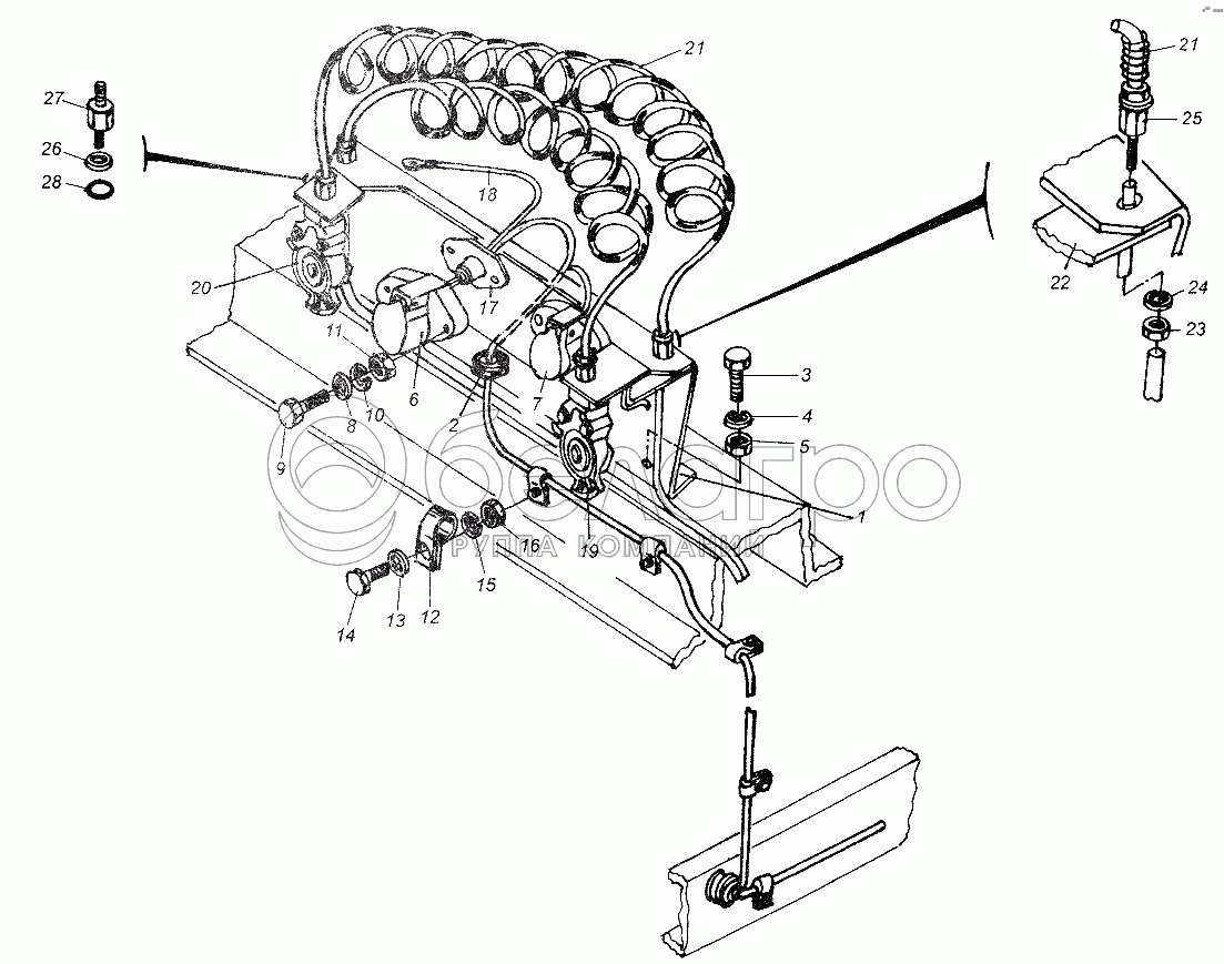 Каталог запасных частей к технике: МАЗ-54326. Установка электропневмовыводов полуприцепа