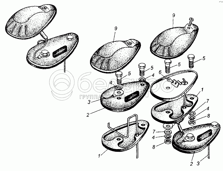 Каталог запасных частей к технике: МАЗ-54326. Установка фонарей знака автопоезда