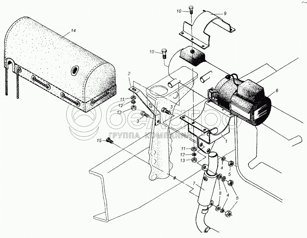 Каталог запасных частей к технике: МАЗ-54326. Установка подогревателя