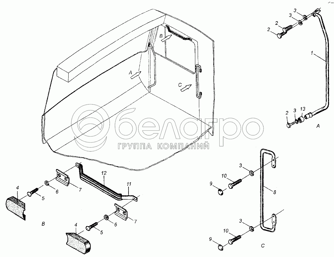 Каталог запасных частей к технике: МАЗ-54326. Установка поручней в кабине