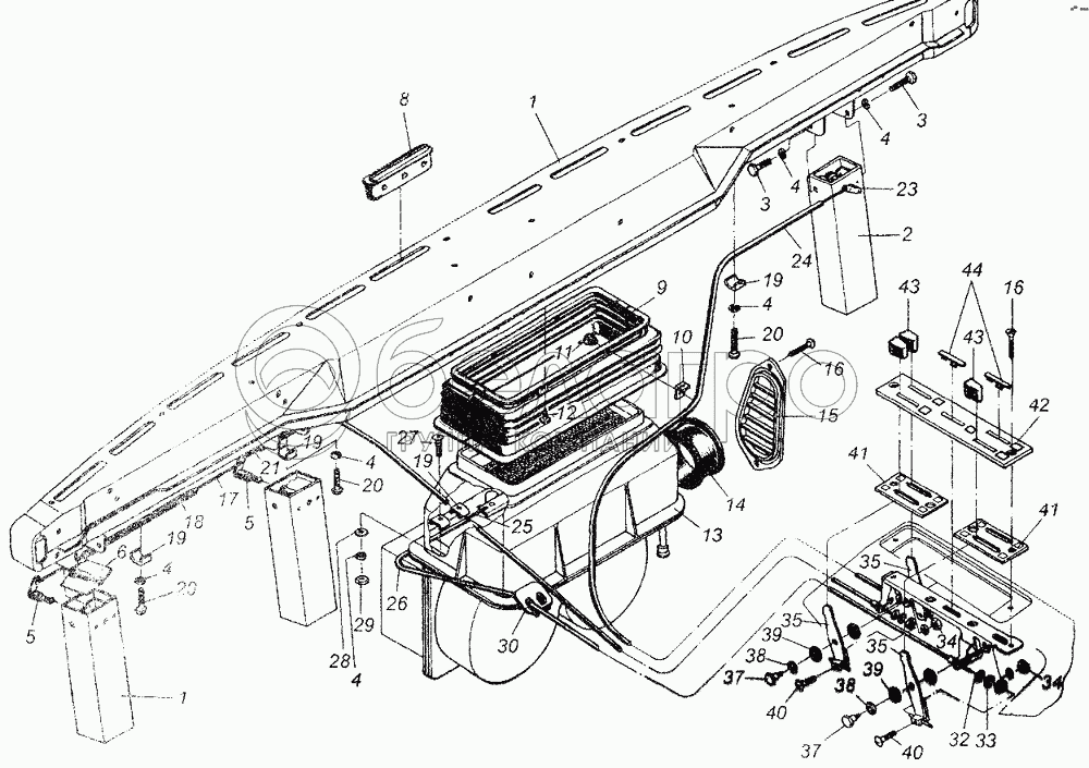 Каталог запасных частей к технике: МАЗ-54326. Установка воздушных заслонок и отопителя кабины