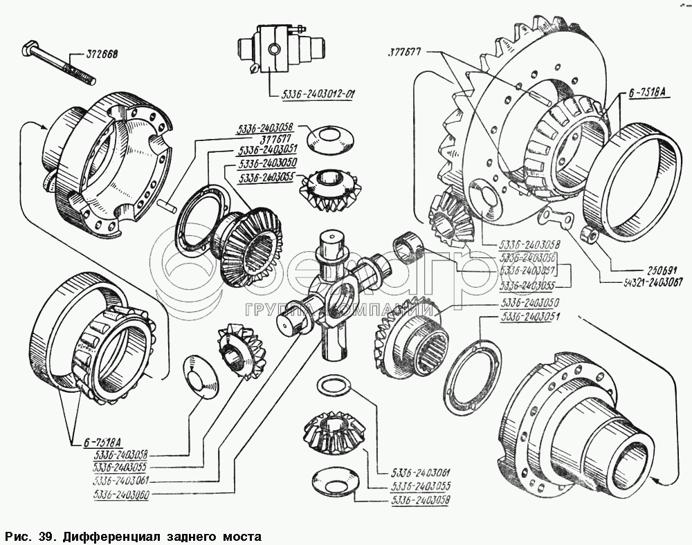 Каталог запасных частей к технике: МАЗ-54328. Дифференциал заднего моста