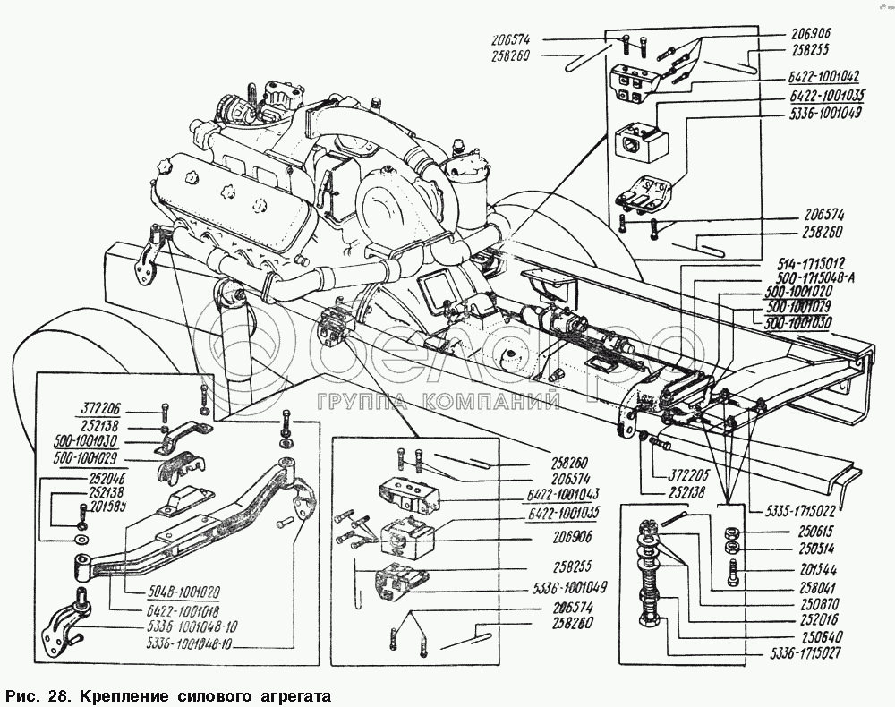 Каталог запасных частей к технике: МАЗ-54328. Крепление силового агрегата