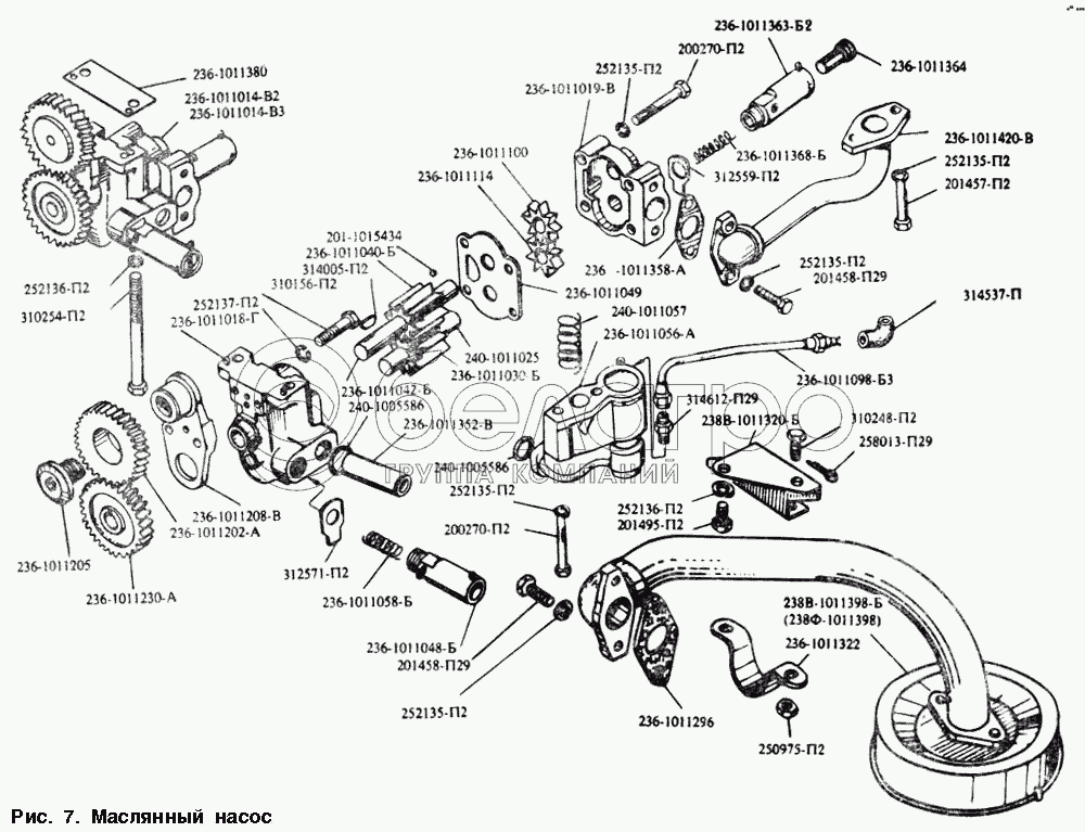 Каталог запасных частей к технике: МАЗ-54328. Масляный насос