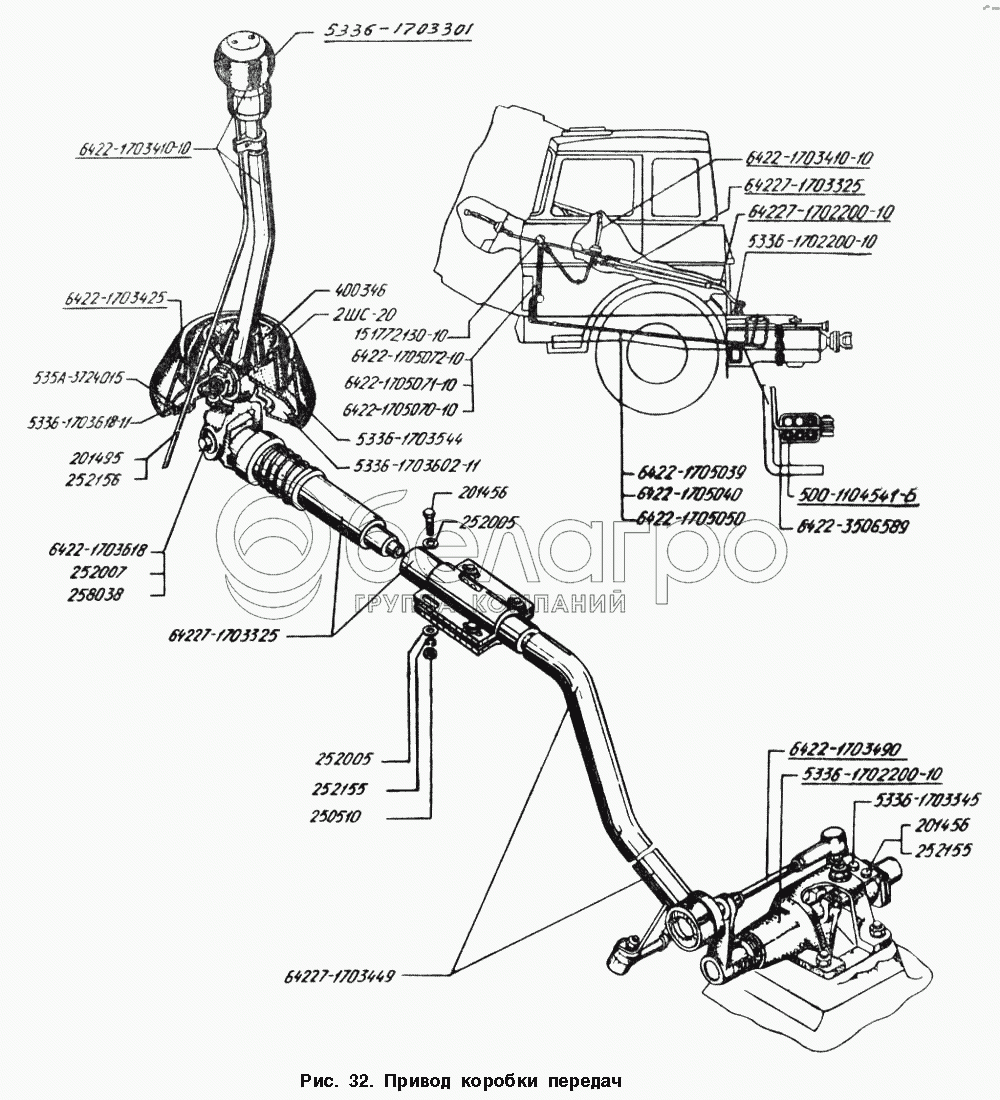 Каталог запасных частей к технике: МАЗ-54328. Привод коробки передач