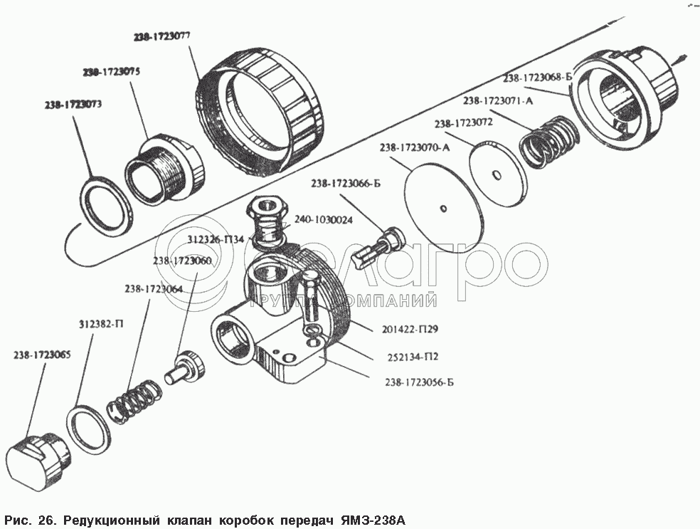 Каталог запасных частей к технике: МАЗ-54328. Редукционный клапан коробок передач ЯМЗ-238А