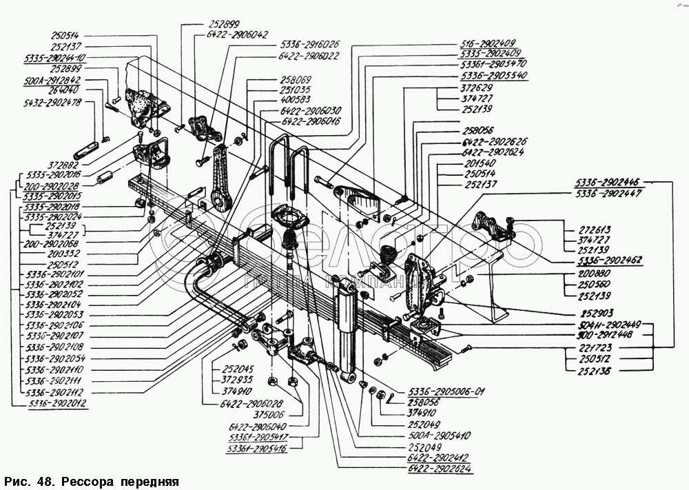 Каталог запасных частей к технике: МАЗ-54328. Рессора передняя