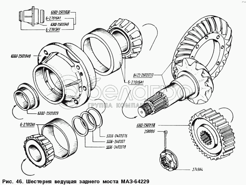 Каталог запасных частей к технике: МАЗ-54328. Шестерня ведущая заднего моста МАЗ-64229
