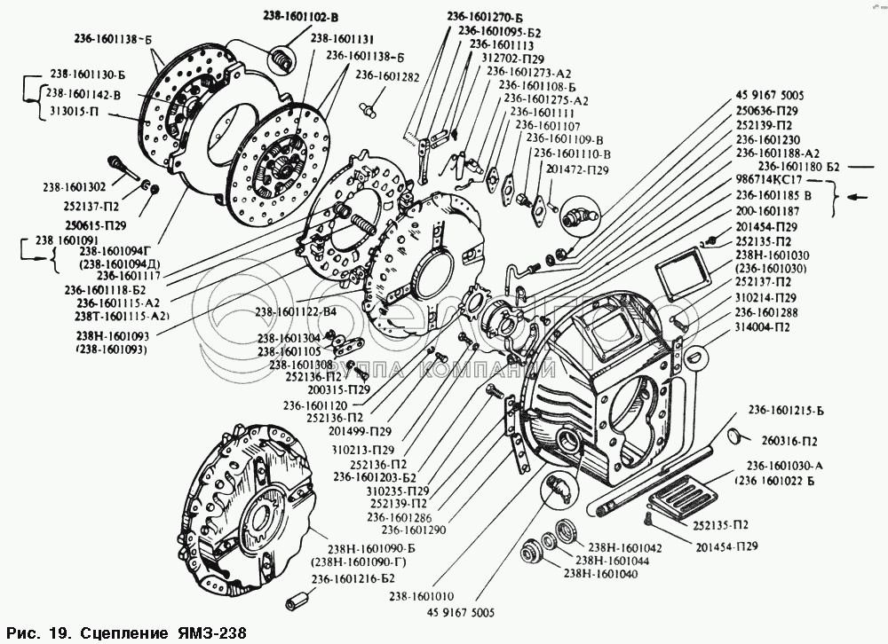 Каталог запасных частей к технике: МАЗ-54328. Сцепление ЯМЗ-238