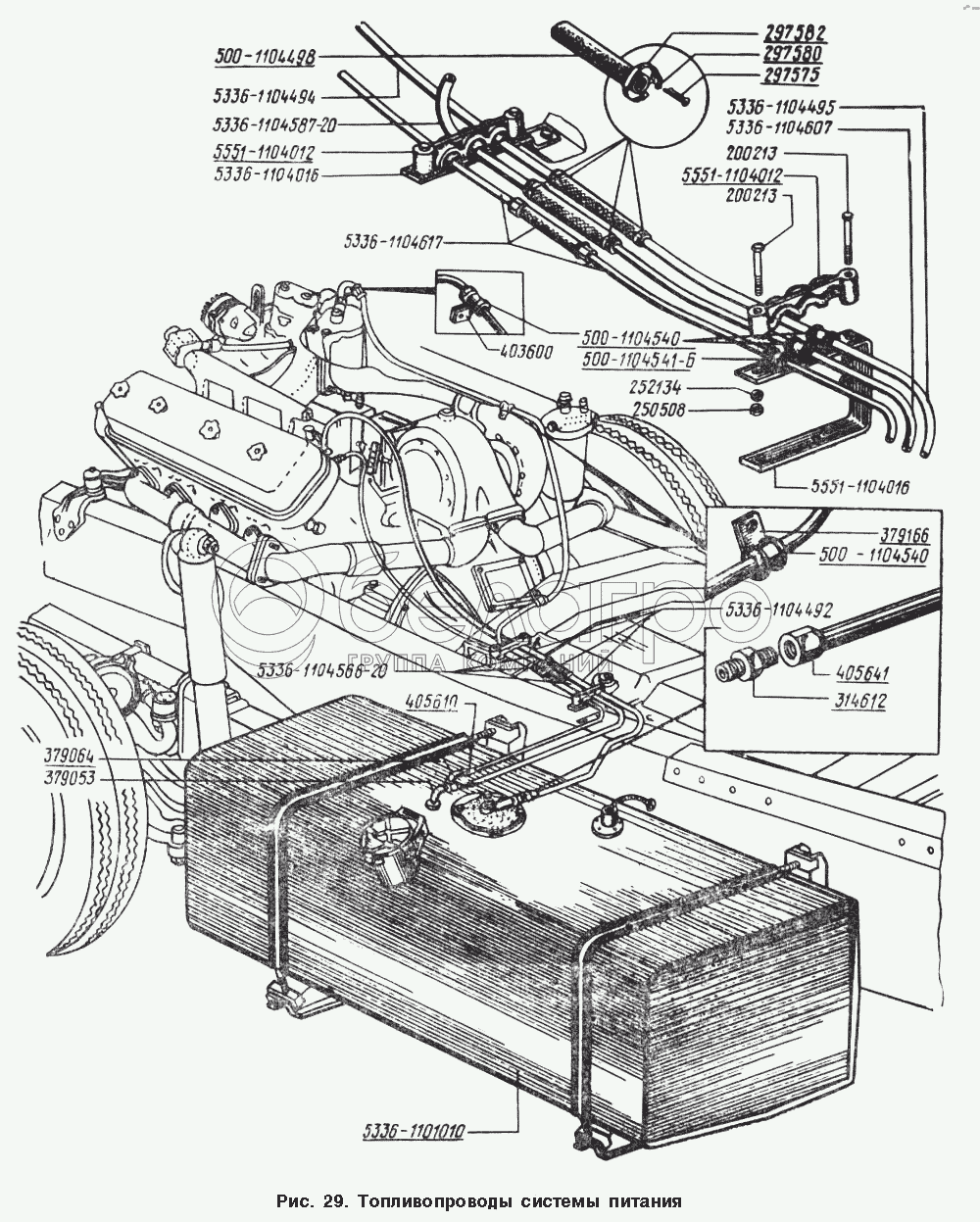 Каталог запасных частей к технике: МАЗ-54328. Топливопроводы системы питания