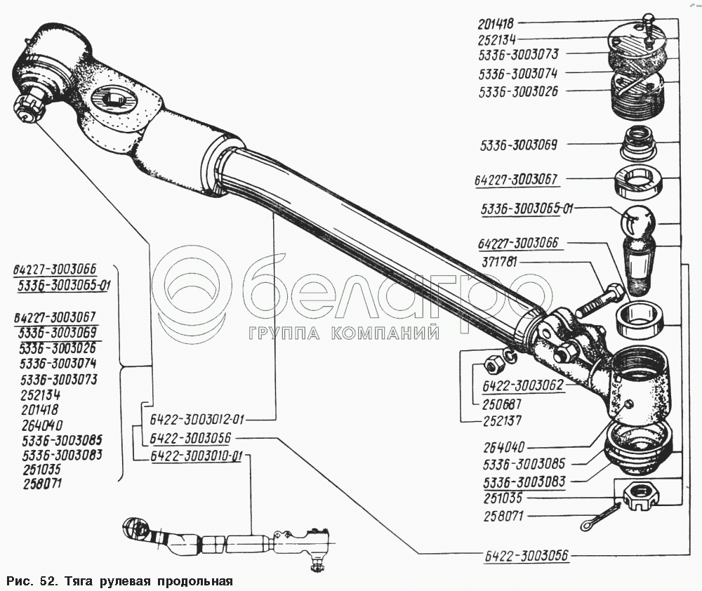 Каталог запасных частей к технике: МАЗ-54328. Тяга рулевая продольная