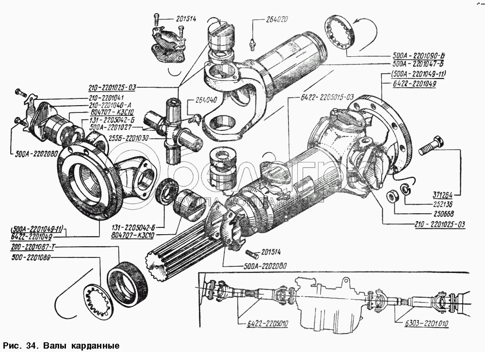 Каталог запасных частей к технике: МАЗ-54328. Валы карданные