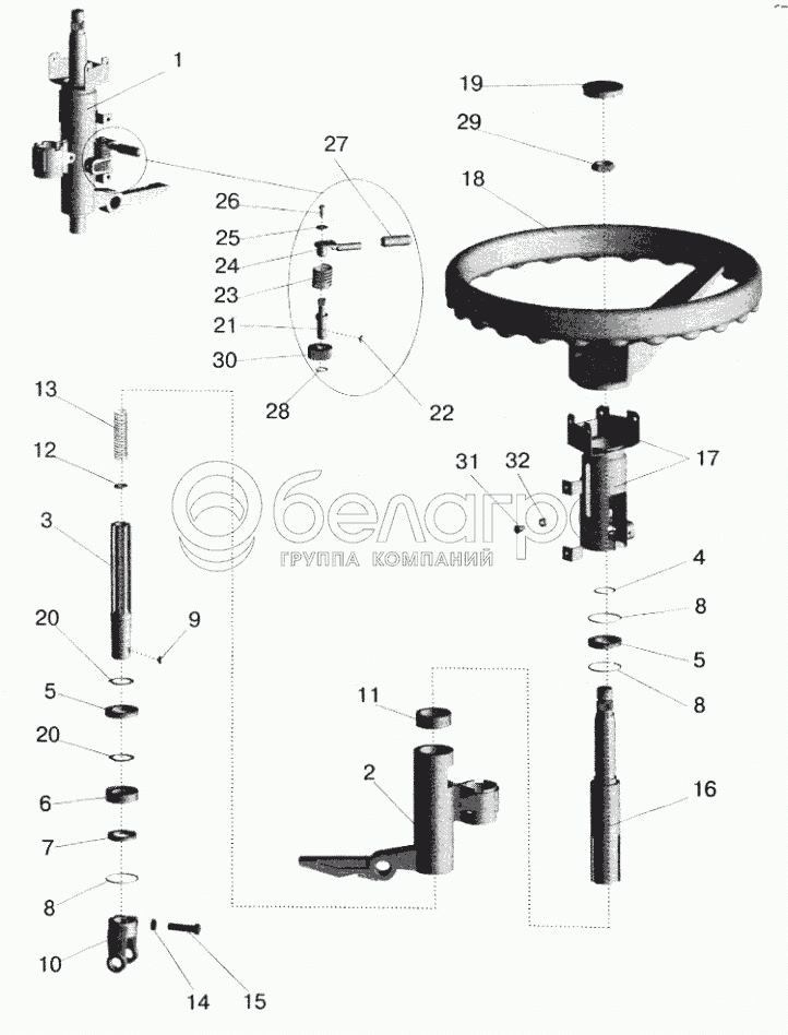 Каталог запасных частей к технике: МАЗ-5432. Колонка рулевая с колесом рулевого управления