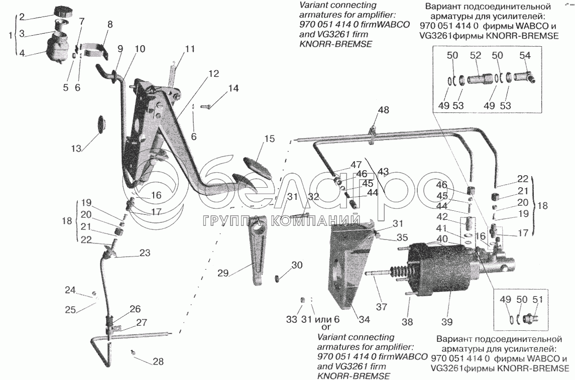 Каталог запасных частей к технике: МАЗ-5432. Механизм управления сцеплением