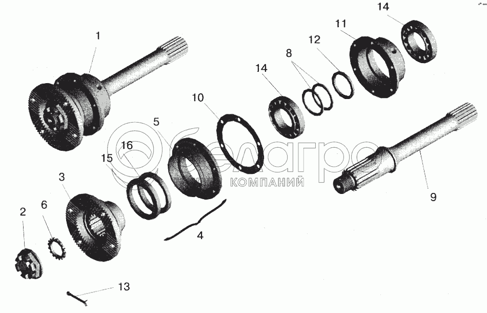 Каталог запасных частей к технике: МАЗ-5432. Мост средний. Вал задний