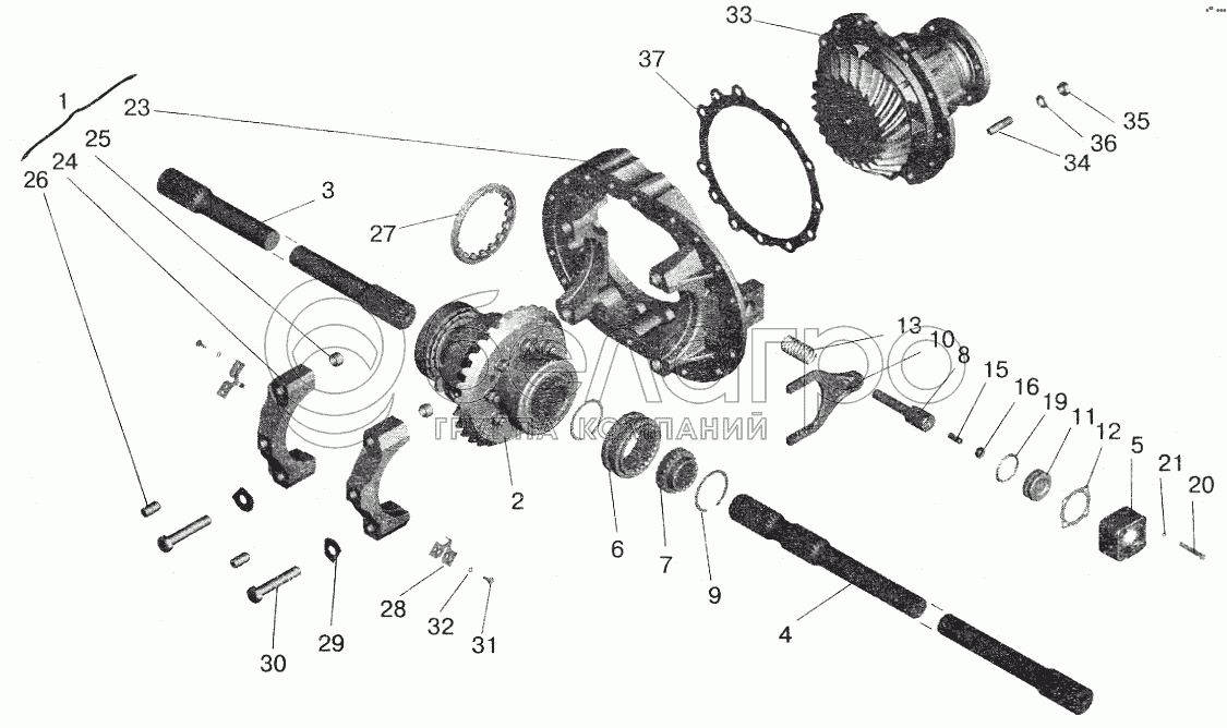 Каталог запасных частей к технике: МАЗ-5432. Мост задний МАЗ-543208. Редуктор