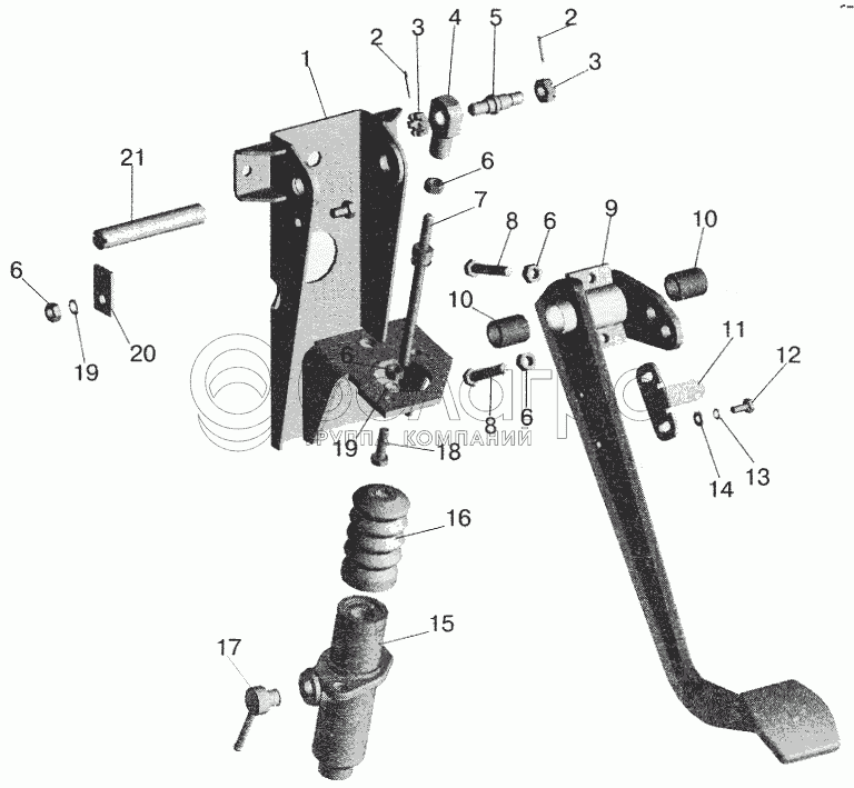 Каталог запасных частей к технике: МАЗ-5432. Основание педали
