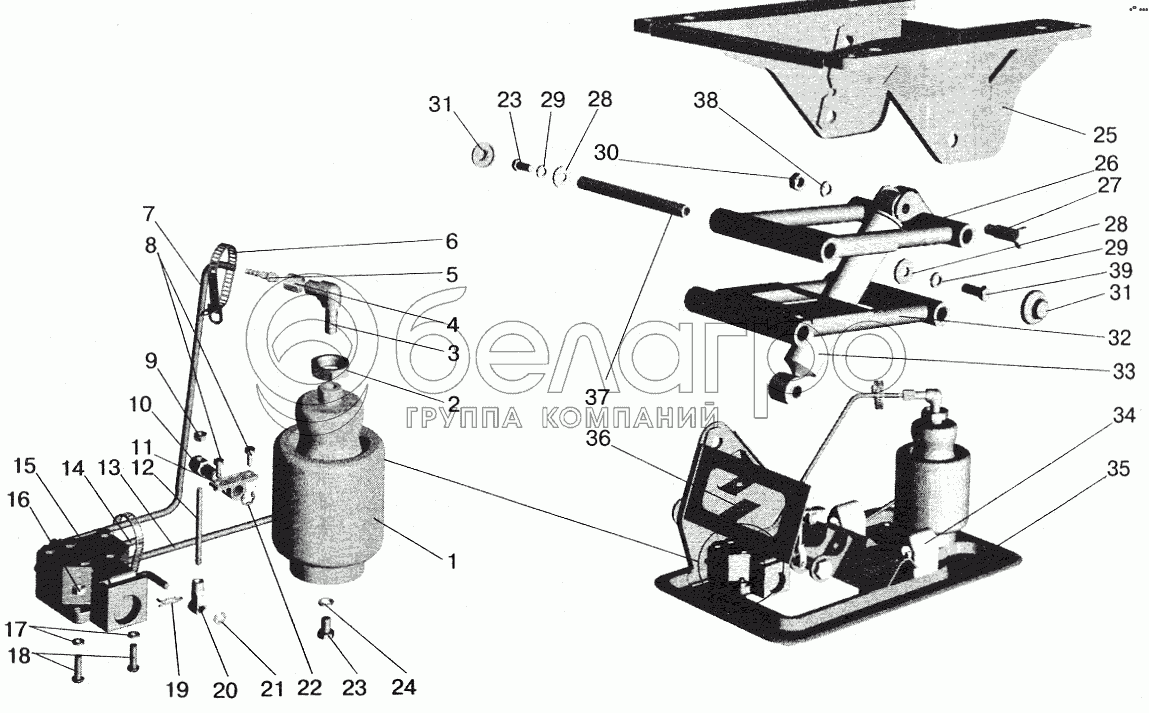 Каталог запасных частей к технике: МАЗ-5432. Подставка сиденья с пневмооборудованием